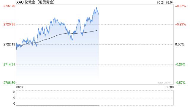 10月18日,COMEX黄金继续冲高,报收2736.4美元/盎司,涨幅1.07%。国内SHFE金夜盘小幅回落后再度上行,报收621.96元/克,涨幅0.60%。